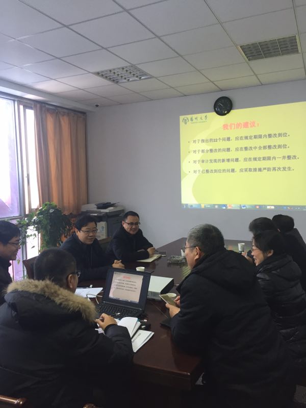 陈亚平强调,各部门、各单位负责人要从讲政治高度,重视省委巡视整改工作,要从防范风险,保障学校各项事业健康可持续发展的高度,扎实开展好问题的梳理和整改工作。对于省委巡视组已经指出的问题要不折不扣的在规定时间内整改到位;对于在整改过程中,梳理出的新问题,要一并整改到位;对于以前发现的问题未完全整改到位的,要在整改中一并改到位;所有问题要彻底改、改彻底,要建立长效机制,严防此类问题再次发生。会议还要求,各部门、各单位要立即落实整改责任人,并于一周内就具体问题的整改制订详细方案,报由采管办、审计处整理汇总后上报学校。