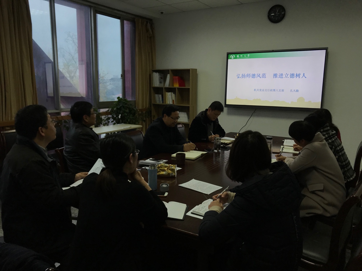 为深入贯彻十九大报告提出的加强师德师风建设的精神,进一步落实全面从严治党、从严治校、从严治教,推进部门教职工自觉践行以德修身和立德树人,进一步塑造良好师德师风,根据支部的学习计划,12月4日下午,行政总支第八支部开展教职工理论学习,学习“立德树人,教书育人”师德师风建设,副校长陈亚平参加了集中学习。