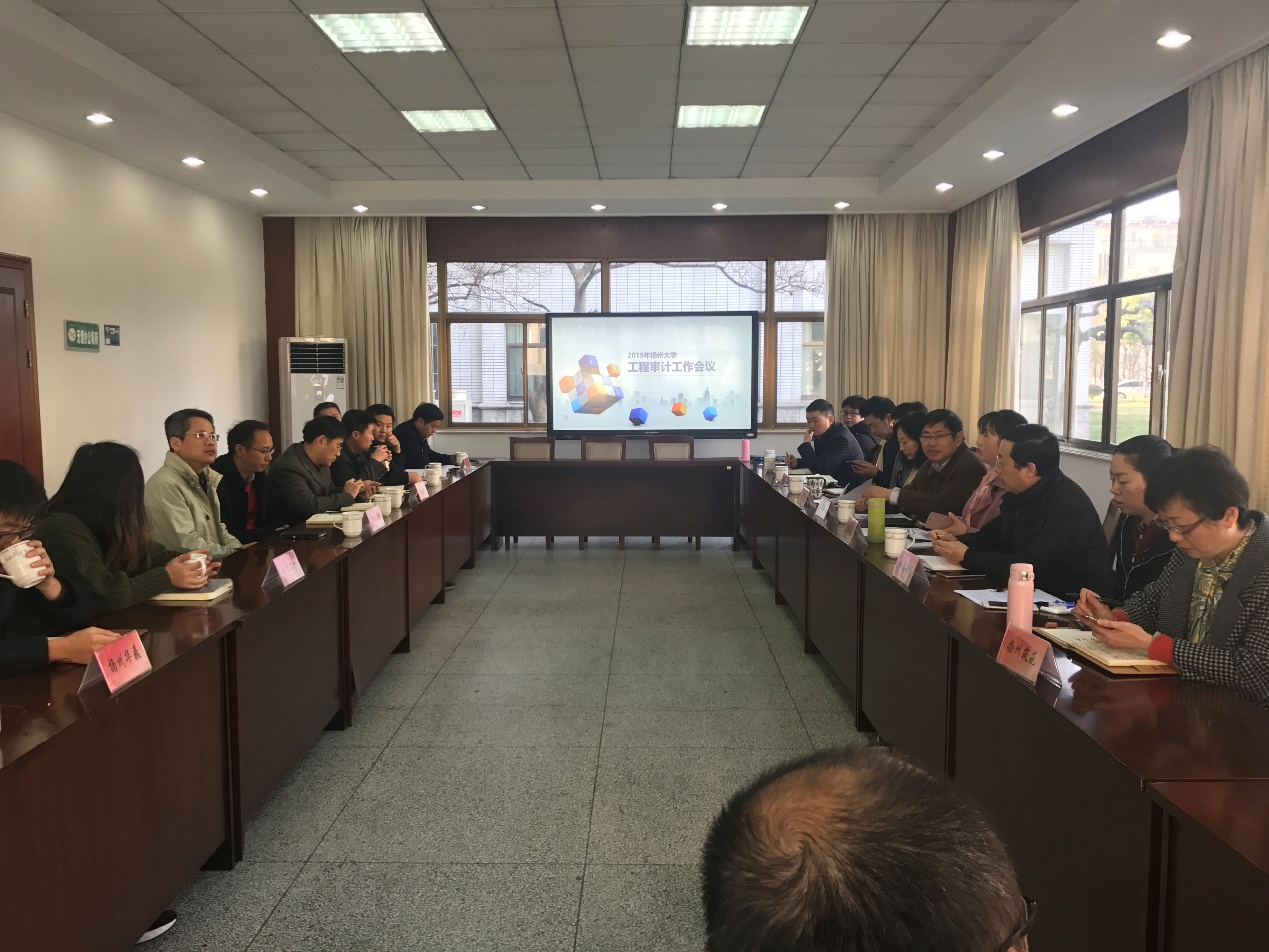 3月13日上午, 2019年扬州大学工程审计工作会议在行政楼115会议室召开。会议由审计处李俊龙处长主持,工程审计科全体成员、江苏汇诚投资咨询管理有限公司等12家协审单位法人代表、项目负责人及审计人员代表出席了会议。