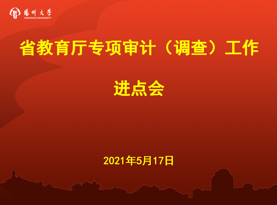 根据2021年工作安排,省教育厅派出审计组,自5月中旬起对我校2020年度“三公”经费支出管理、学生食堂公益性政策落实、截至2020年底经济活动内部控制情况等开展专项审计(调查)。