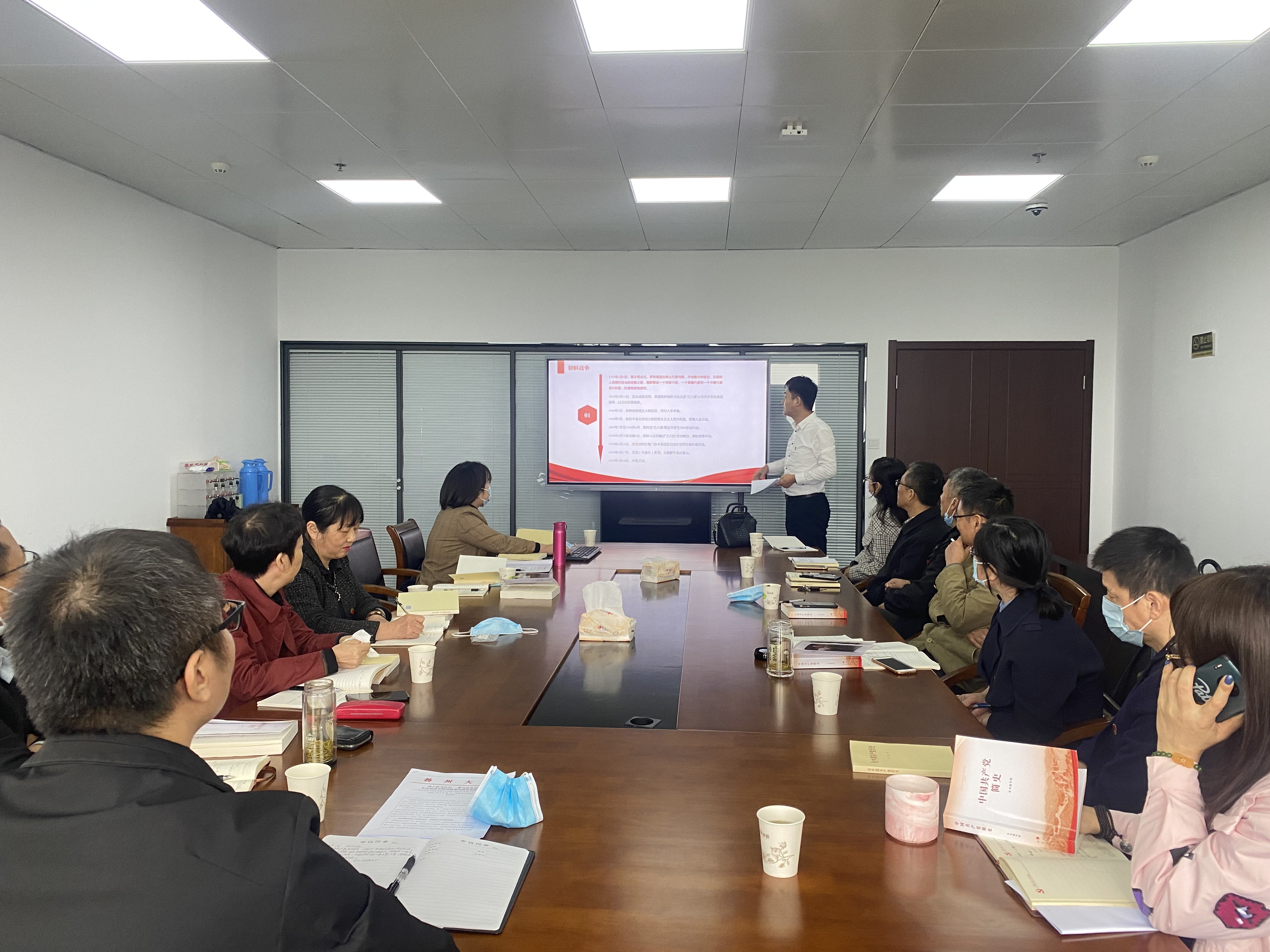 李俊龙领学了《中国共产党简史》中有关抗美援朝和社会主义建立的有关篇章。抗美援朝战争奏响了一曲气壮山河的英雄赞歌,锻造了跨越时空、历久弥新的抗美援朝精神。我们党团结带领中国人民自力更生、发愤图强,创造了社会主义革命和建设的伟大成就。
