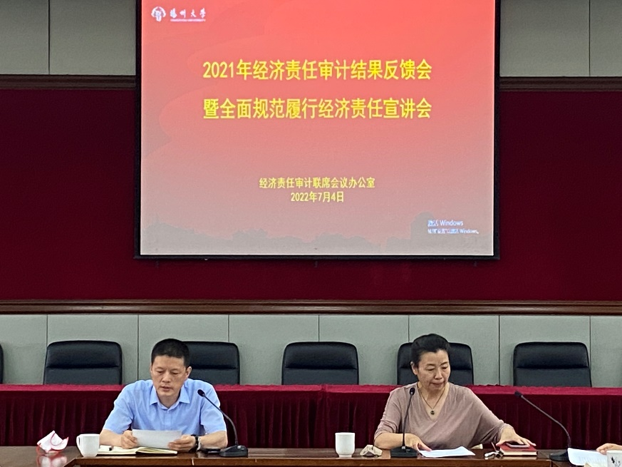 7月4日,学校召开2021年经济责任审计结果反馈会暨全面规范履行经济责任宣讲会。会议由党校常务副校长、党委组织部副部长甘袁雯主持,审计处主要负责同志,审计组成员,被审计领导干部以及所在单位的领导班子成员和办公室主任(综合科科长)出席会议。