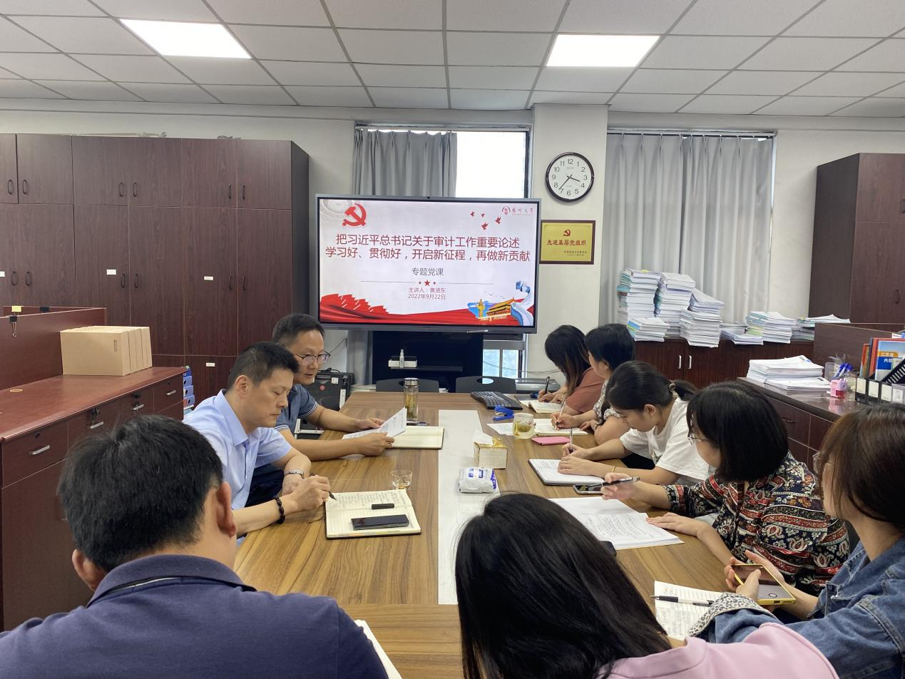 为贯彻落实党中央对审计工作的部署要求,更好发挥审计在党和国家监督体系中的重要作用,9月22日下午,审计处党支部组织了专题学习。支部书记黄贤东以《把习近平总书记关于审计工作重要论述学习好、贯彻好,开启新征程,再做新贡献》为主题给全体人员上了一堂生动的党课。