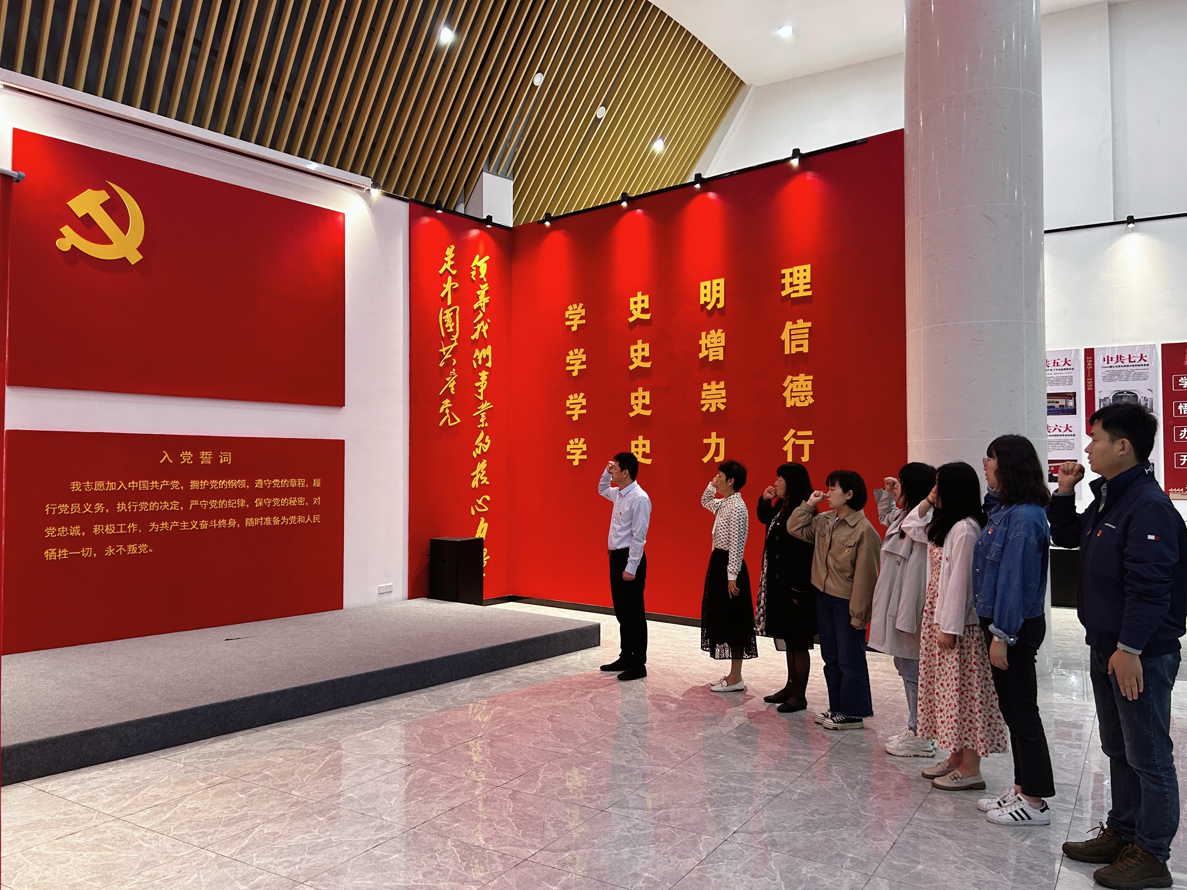 全体人员追寻红色足迹,感受党的伟大精神。在复刻的“红船”码头,重温了“红船”精神,深刻感受了中国共产党开天辟地、敢为人先的首创精神,坚定理想信念、百折不挠的奋斗精神和立党为公、忠诚为民的奉献精神;在“初心馆”,参观了党史文化墙和红色革命物件展区,通过聆听讲解、VR体验等方式深层次多维度回顾了党从一大到二十大波澜壮阔的光辉历程和伟大成就,深切感受到革命先烈执着坚毅、艰苦创业的斗争精神。