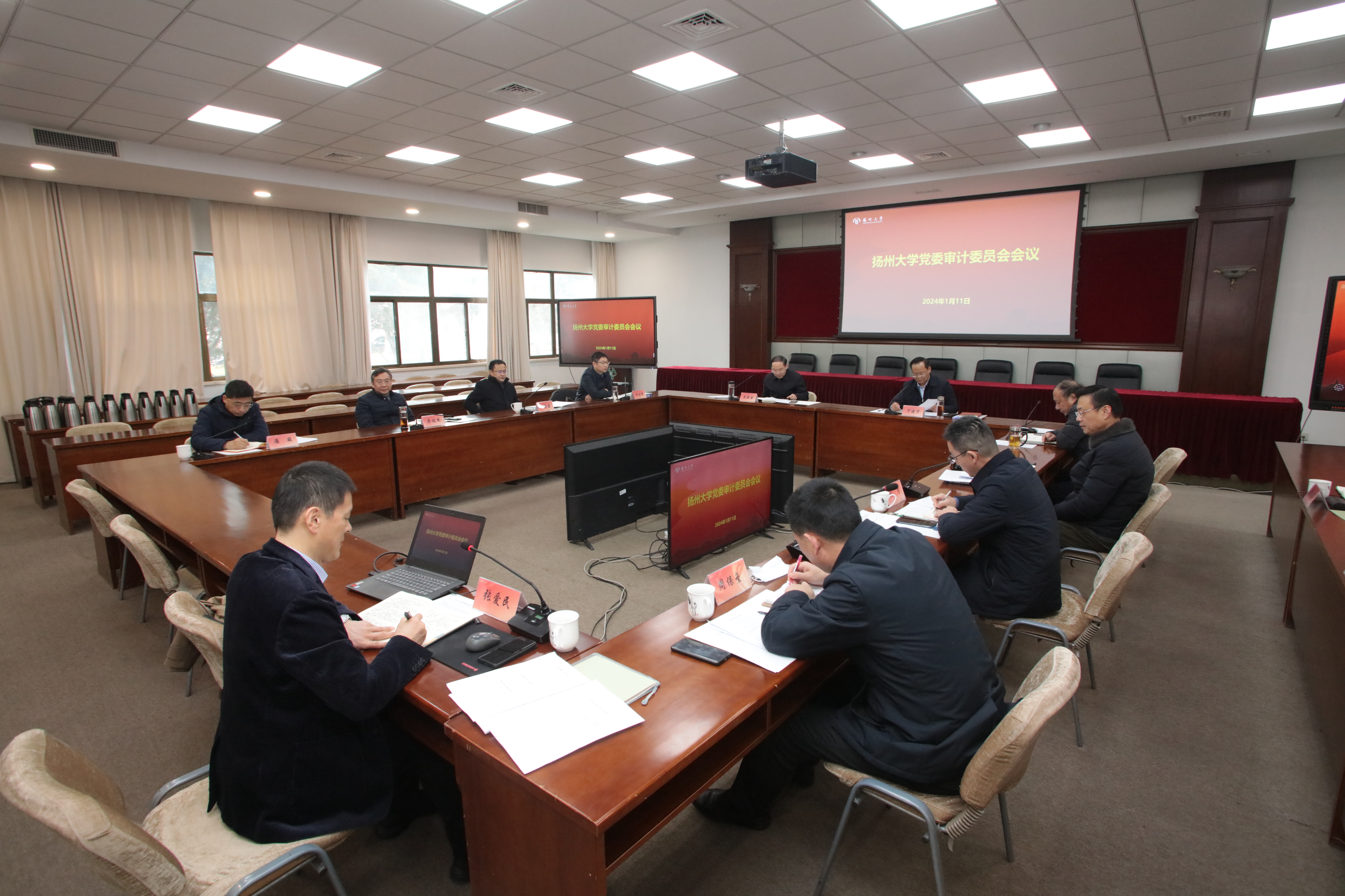 1月11日,学校召开审计委员会会议。校党委书记、审计委员会主任焦新安出席会议并讲话。校长、审计委员会主任丁建宁主持会议。会议深入学习了习近平总书记在二十届中央审计委员会第一次会议上的讲话及省委审计委员会会议精神,听取了审计处主要负责同志所作的工作汇报,审议通过2024年审计工作计划,研究部署了2024年学校审计工作。
