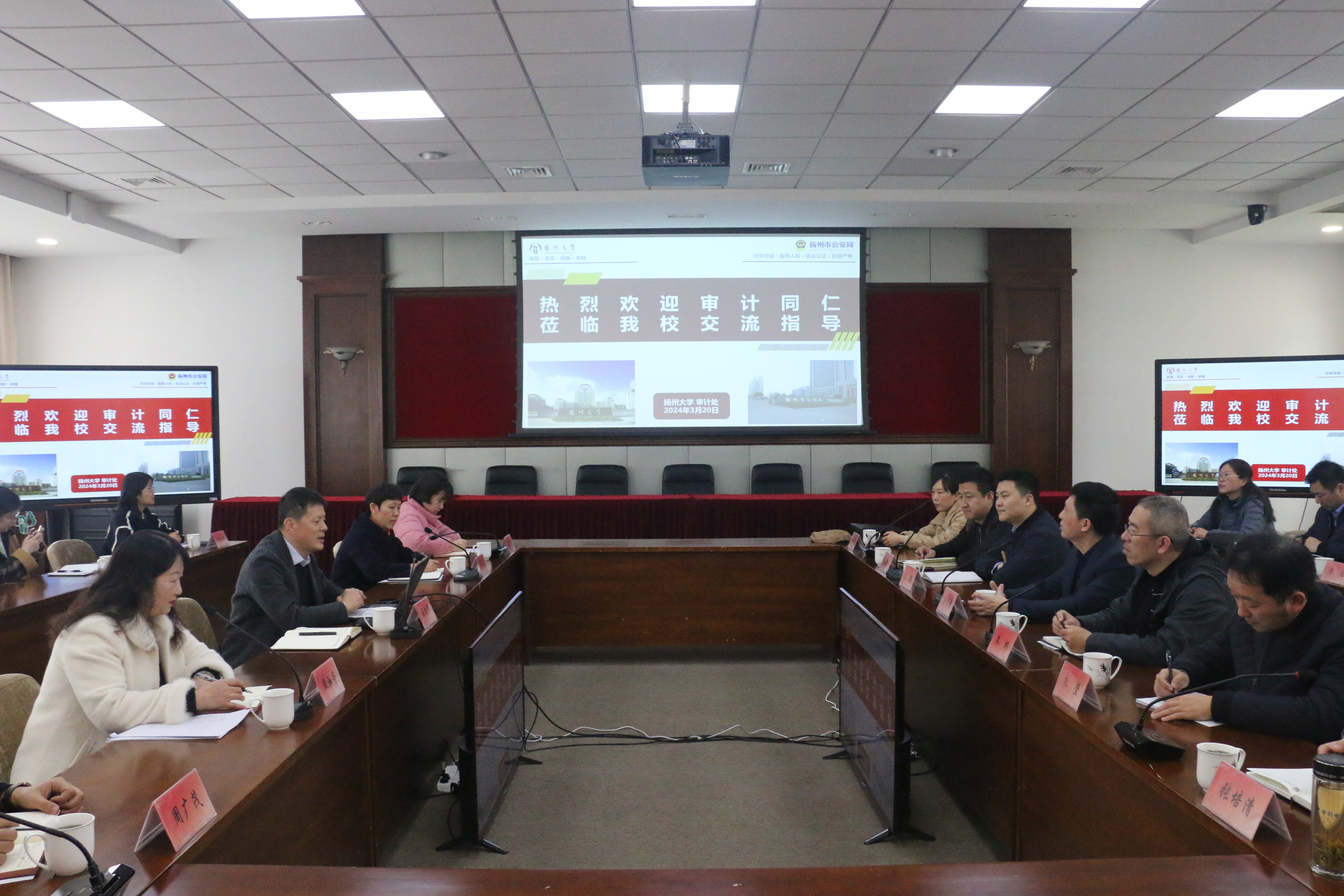 3月20日,扬州市公安局审计处曹振国处长一行21人来我校调研交流,张爱民处长主持交流会。