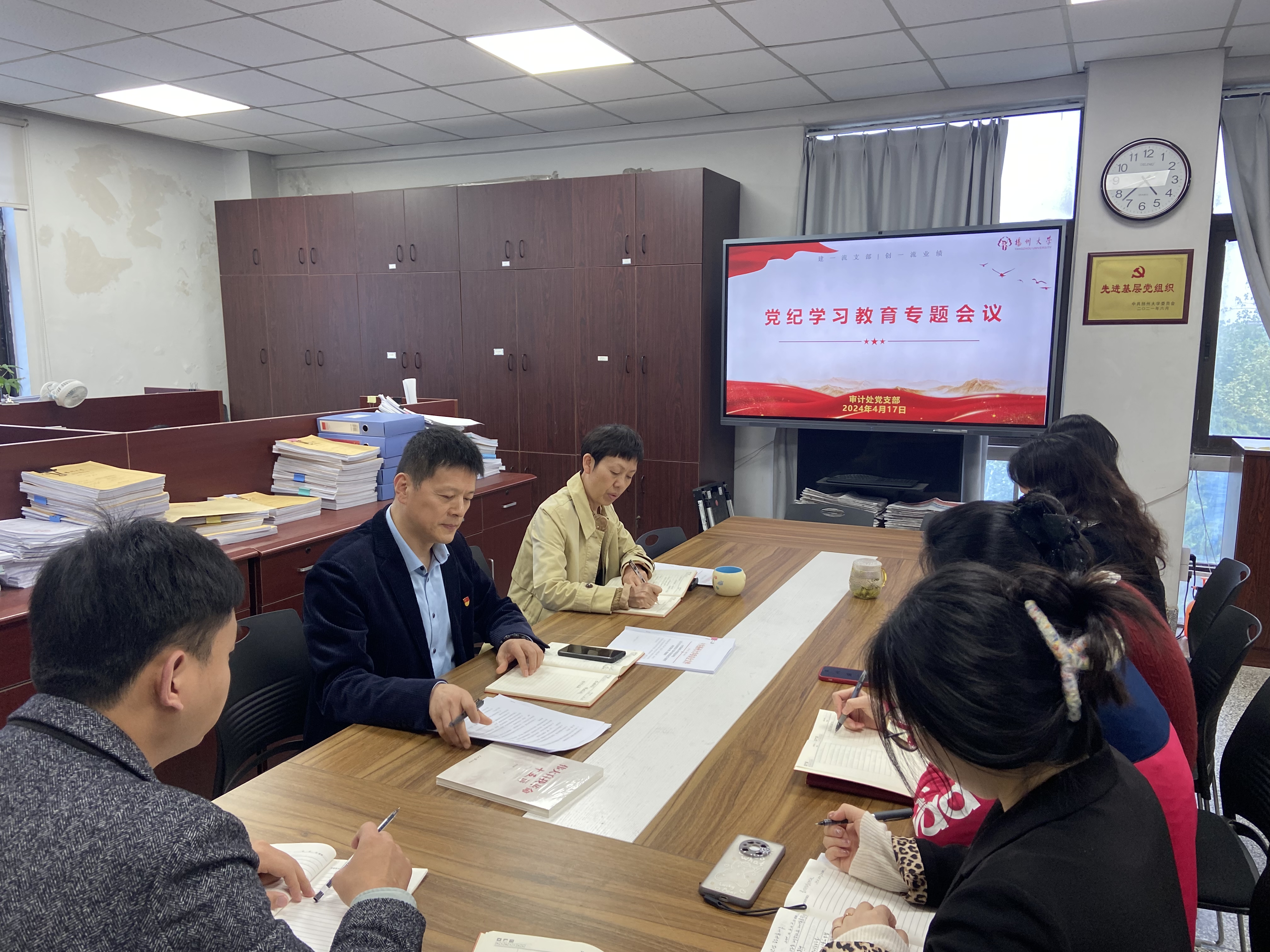 4月17日,审计处党支部召开党纪学习教育启动部署会议,传达了校党委全体(扩大)会议精神,集中学习了中共扬州大学委员会《关于在全校党员干部中开展党纪学习教育的实施方案》的通知,安排部署支部党纪学习教育工作及根据方案要求近期要实施的重点工作。支部书记张爱民主持会议并作动员讲话。