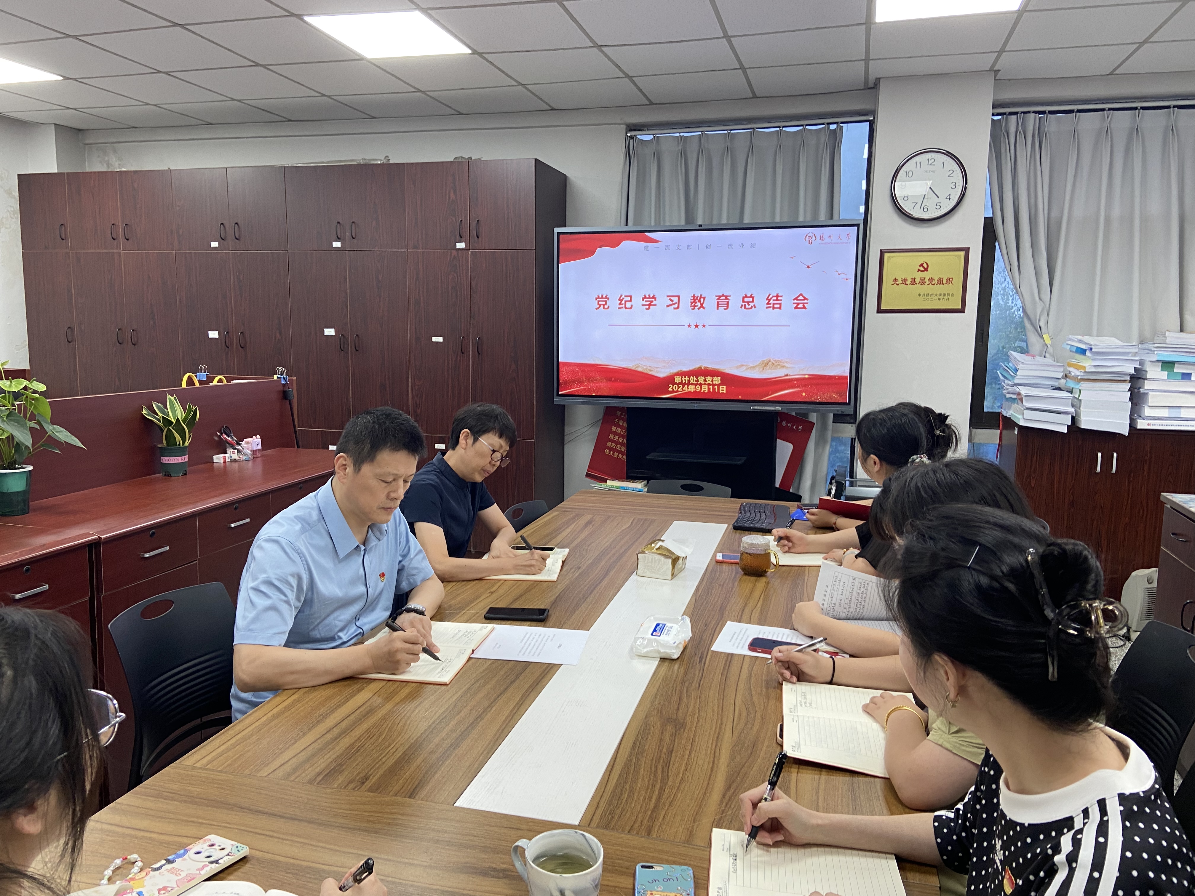 会议指出,自4月17日党纪学习教育开展以来,支部提高政治站位,把握目标要求,聚焦重点内容,制定详细学习计划和工作方案。采用线上线下、自学导学领学等方式,围绕《中国共产党纪律处分条例》进行学习研讨、赴仪征市十二圩廉政教育基地开展现场教育、与江苏警官学院审计处党支部开展联学共建、组织典型案例剖析、赴平山堂廉政教育基地开展廉政教育活动,在沉浸式学习、现场式体验、联学式互动、案例式辅导等方面联动发力,引导党员同志把增强党性、严守纪律、砥砺作风贯通起来,不断推进党纪学习教育走深走实、见行见效。